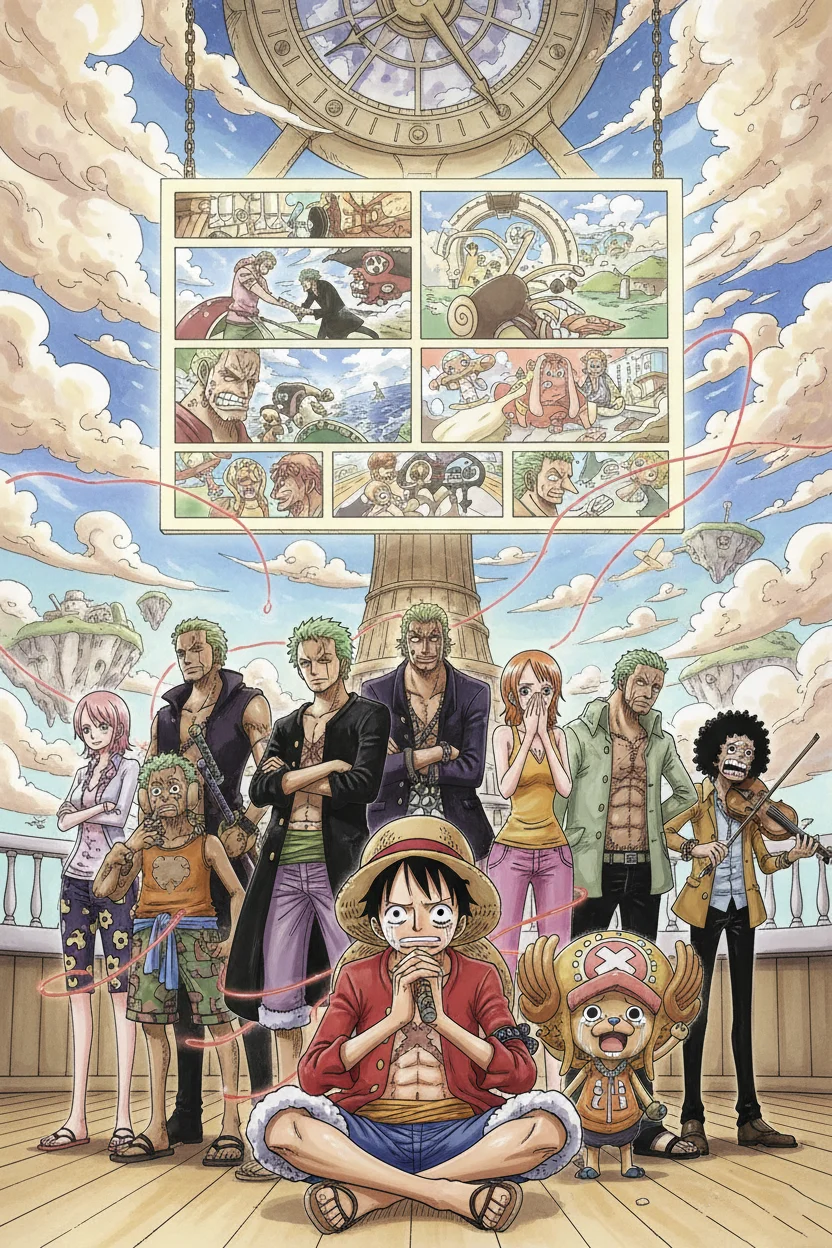 Một khoảnh khắc trước, cú Red Roc của Luffy vừa chạm vào cằm Kaido, khoảnh khắc sau cậu đã chớp mắt trước màn đen trong một căn phòng lạ hoắc, đầu đau như thể vừa nhậu cùng Zoro cả đêm. Quanh cậu, các thành viên trong băng cũng lần lượt tỉnh lại, ai nấy đều lộ rõ vẻ hoang mang chẳng khác gì cậu.