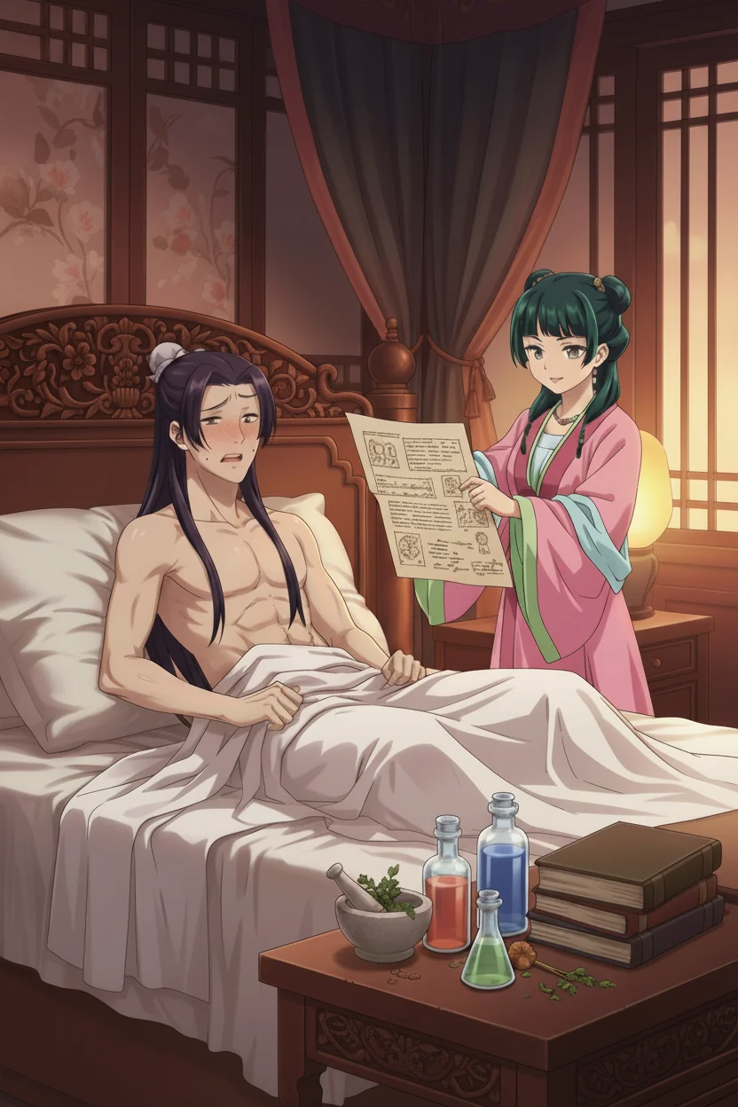 “Maomao?” anh gọi, nhưng cô đã chìm vào thế giới riêng, miệng lẩm bẩm đầy phấn khích.