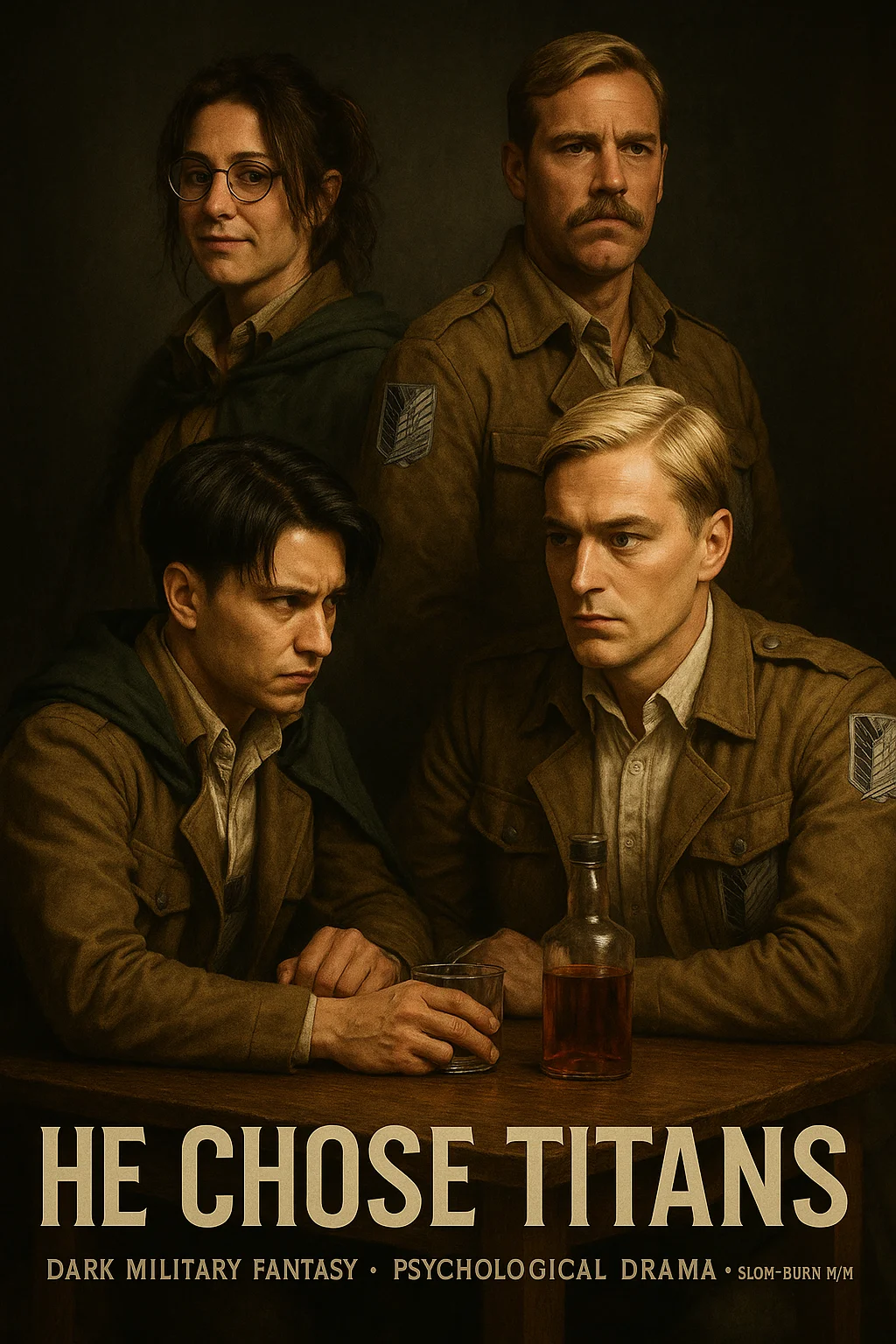 Erwin stepped into the doorway, Captain Anke at his side, both of them clutching stacks of documents. They seemed to be looking for someone, their eyes scanning the crowded mess hall. It wasn�t like Erwin to show his face on a night like this�he usually spent his free evenings holed up in his office with a stack of paperwork.