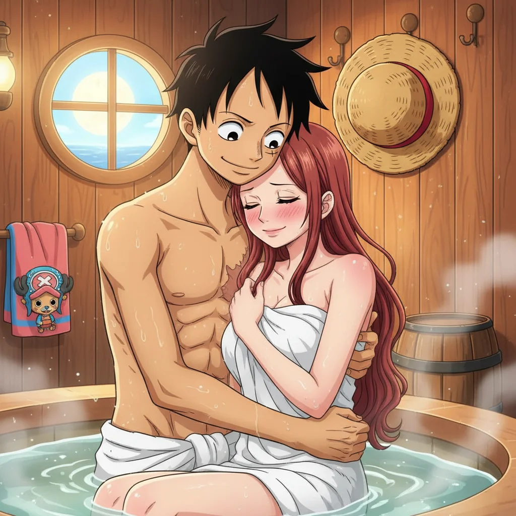 “G-g-giúp... rửa lưng á?” Mặt bạn đỏ rực. Dù đã làm chuyện này cả trăm lần, nhưng giờ đây, nhờ mấy lời của Sanji và Robin, bạn tự nhiên thấy để ý từng centimet trên cơ thể cậu ấy. Bạn cố gắng rửa lưng cho cậu, và nếu Luffy có để ý tay bạn run thì cũng không nói gì.