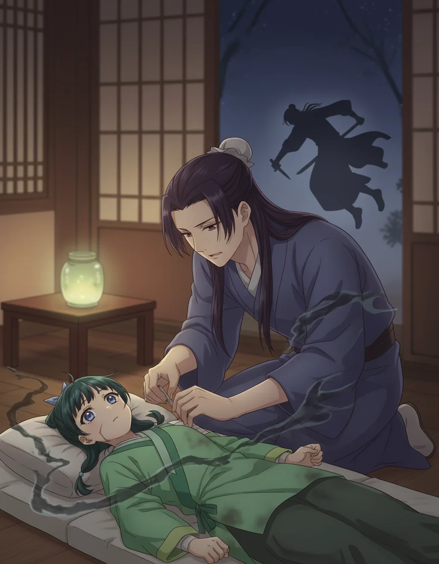 "Maomao?" Giọng quen thuộc vang lên từ phòng bên cạnh, khiến Maomao phải cố nén tiếng rên rỉ. Tình cảm cô dành cho người phụ nữ đã trở thành người thân này chưa từng thay đổi, nhưng mệt mỏi khiến mỗi lần bị gọi lại càng thấy nặng nề hơn.